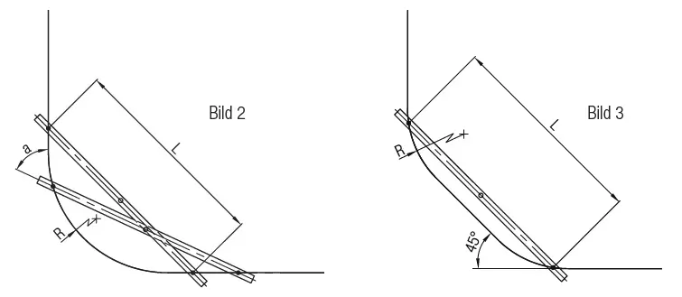 Die Angaben zum Radius beziehen sich auf die Mitte der C-Schienenbreite.