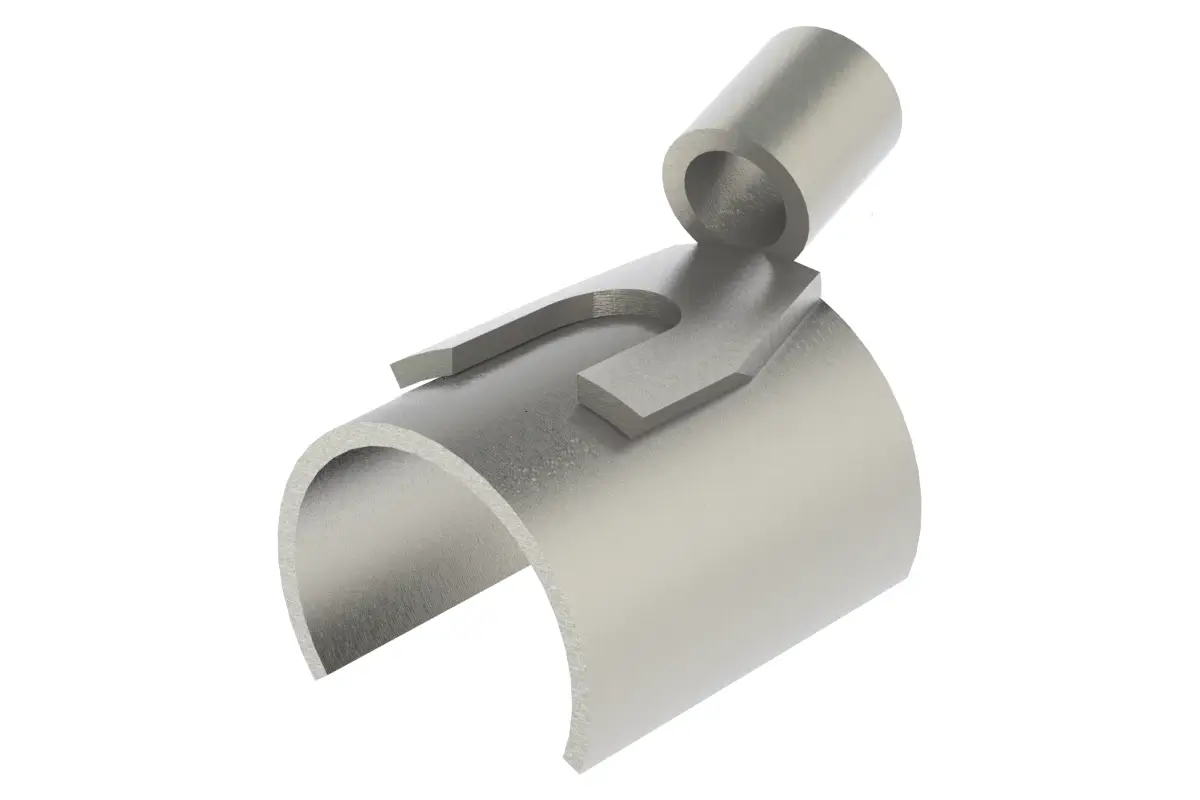 Bei der Montage wird der Einspeiseschuh auf die Schiene aufgedreht.