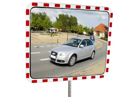 Der TM Spiegel erhöht die Sicherheit im Straßenverkehr und auf Betriebsgeländen. Das Gefahrenpotential wird durch den Einsatz des Spiegels erheblich minimiert. Durch die Reflexfolie Typ RA 2 wird das Unfallrisiko besonders bei schlechter Witterung oder Dunkelheit vermindert. Die Variante aus unzerstörbarem Polycarbonat ist besonders gut für Vandalismus-gefährdete Bereiche geeignet.