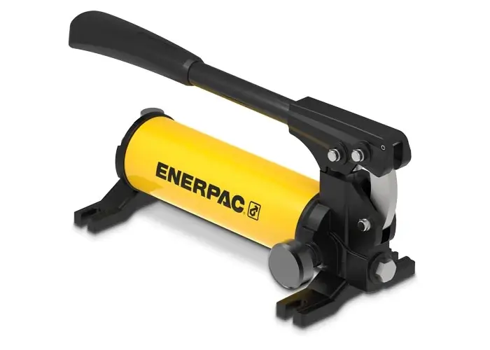 Die Enerpac P-Serie umfasst kompakte, robuste Niederdruck-Handpumpen für den Einsatz mit einfachwirkenden Zylindern und Werkzeugen, typischerweise für Füllarbeiten sowie Druckprüfungen im Bereich bis 350 bar. Je nach Modell stehen Tankvolumen von 360 cm³ bis 3277 cm³ zur Verfügung, wodurch sich die Pumpe passend zum benötigten Zylindervolumen und Leitungsvolumen auslegen lässt.