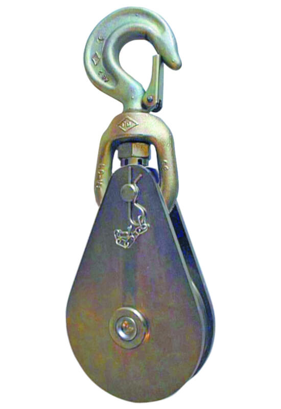 Die Schwerlastrolle mit Haken ETC von Tractel ist ein schwerer Klappkloben für Drahtseile, speziell ausgelegt für temporäre Hebevorgänge und Zuganwendungen mit hohen Lasten, insbesondere im Off-Shore- und Marinebereich.
