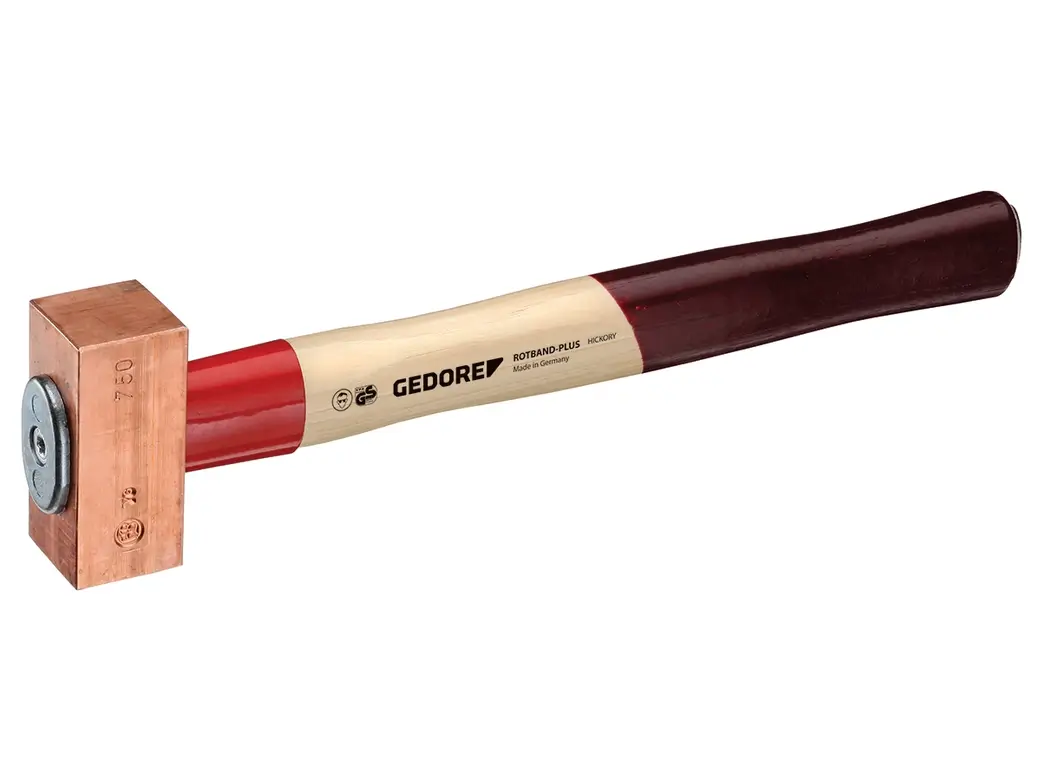 Ein Kupferhammer mit Stielschutzhülse ist ein Hammer, der für Anwendungen in der Metallverarbeitung und der Elektrotechnik verwendet wird. Der Hammer besteht aus einem Kupferkopf und einem Griff aus Holz oder Kunststoff, der mit einer Stielschutzhülse ausgestattet ist.