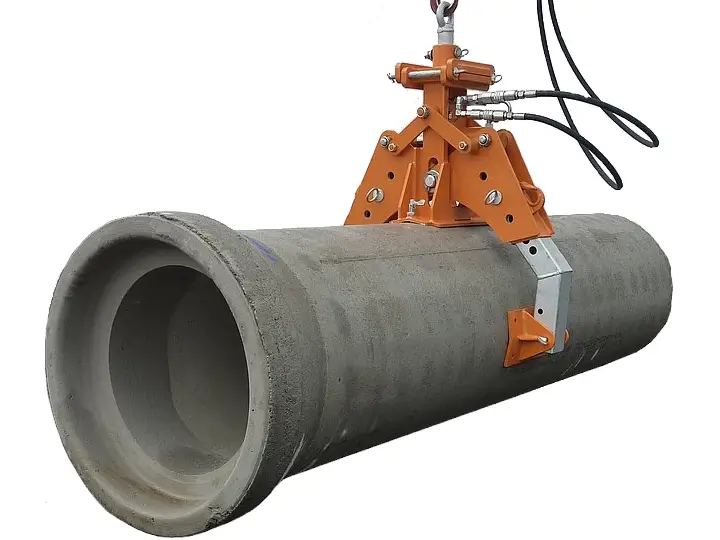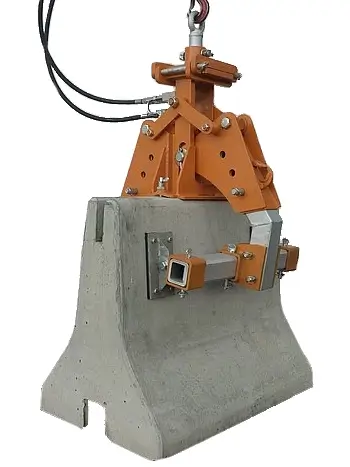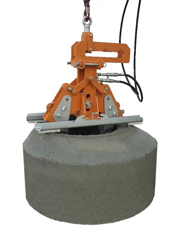 Es gibt auch verschiedene Varianten des Hydro-Greifers 134, die für spezifische Anwendungen konzipiert sind. Die Spanneinheit 134 200 wird beispielsweise für den Transport von Schachtringen verwendet, während die Spanneinheit 134 300 für den Transport von Rohren gedacht ist. Die Spanneinheit 134 400 eignet sich für den Transport von Konen und die Spanneinheit 134 600 für Betonschutzwände wie beispielsweise New Jersey-Profile.