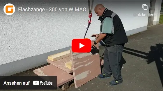 Die Wimag Flachzange 300 ist ein Werkzeug, das zur Handhabung von Platten aus verschiedenen Materialien verwendet wird. Eine große Sicherheit wird durch die hohe Übersetzung von 5:1 gewährleistet, was bedeutet, dass die erforderliche Kraft zum Anheben der Platten auf ein Fünftel reduziert wird.