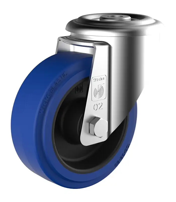 Räder der BN-Serie bestehen aus einem schwarzen Polyamid-Radkörper auf die ein hochwertiger, blauer Wicke-ELASTIC Gummireifen in Laufradqualität in einer Härte von ca. 63 Shore A direkt aufvulkanisiert wird. Die Räder sind mit Rollenlager ausgestattet.