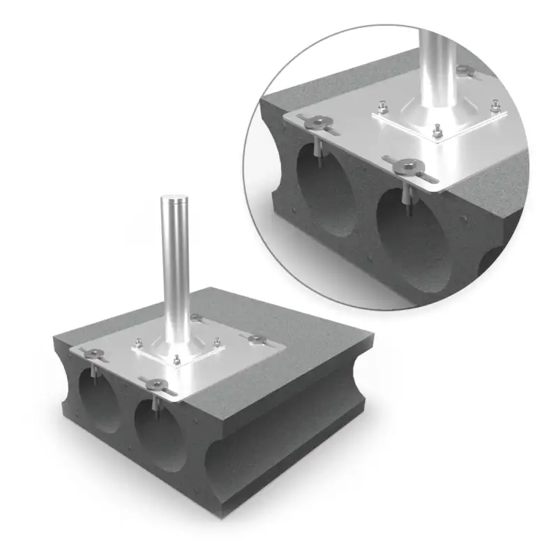 Die SEKURANT® VARIO Stütze dient als Anschlageinrichtung zur Befestigung der persönlichen Schutzausrüstung gegen Absturz, sowie als Unterkonstruktion für das SEKURANT® VARIO Seilsystem. Die Befestigung erfolgt auf einer Spannbeton-Hohldeckenplatte.