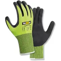 Die Texxor 2428 kombinieren einen schnittfesten Träger mit einer besandeten Nitrilbeschichtung für sicheren Grip – auch bei leicht öligen Oberflächen. Dank nahtlosem Feinstrick sitzen sie ergonomisch und bieten sehr gutes Tastgefühl in der Montage. Erhältlich in den Größen 7–11; Verpackungseinheit 144 Paar/Karton. Ab Lager lieferbar – ideal für Industrie, Handwerk und Logistik.