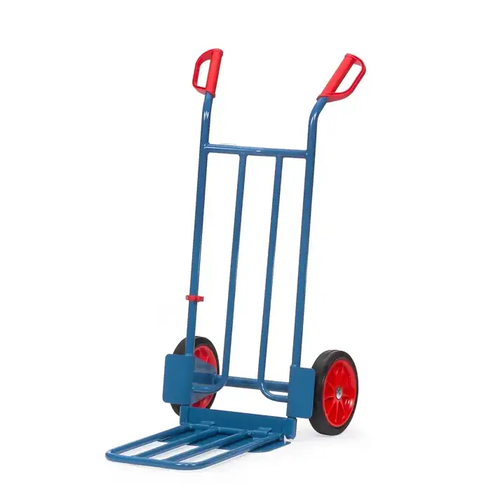 Mit ihrer großen, klappbaren Stahlrohr-Schaufel bietet die Paketkarre eine flexible Lösung für den Transport unterschiedlichster Güter.