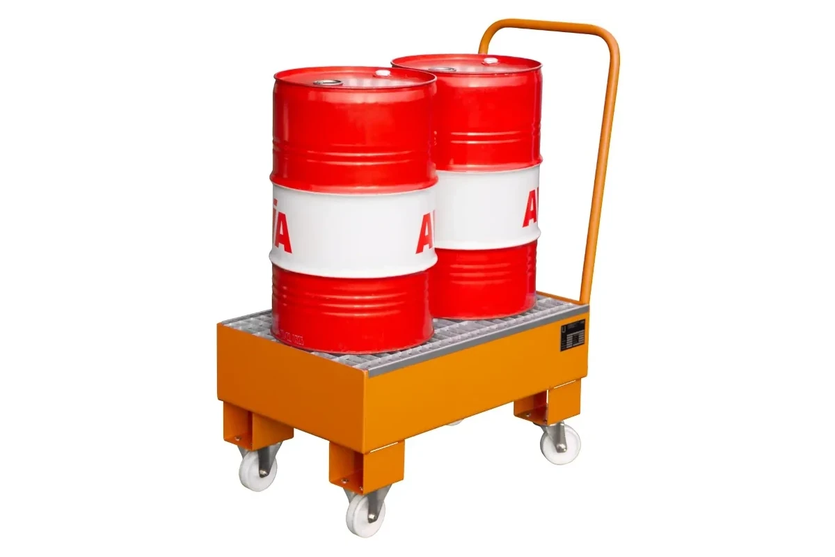 Sichere Lagerung und flexibler Transport von Schmierstoffen oder Altöl in 60-Liter-Fässern.