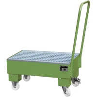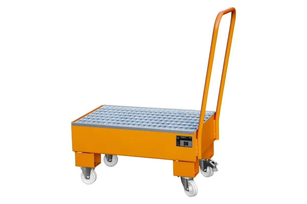 Die fahrbare Auffangwanne sorgt für gesetzeskonforme Lagerung wassergefährdender Stoffe und schützt vor ungewollten Leckagen. Die Kombination aus stabiler Bauweise und mobilitätsfreundlicher Ausstattung bietet ein Plus an Arbeitssicherheit und Umweltschutz.