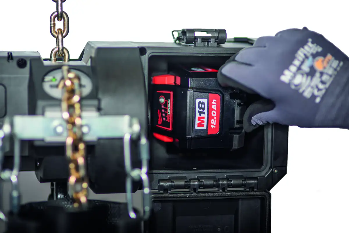 • Akku-Elektrokettenzug – vollständig netzunabhängig