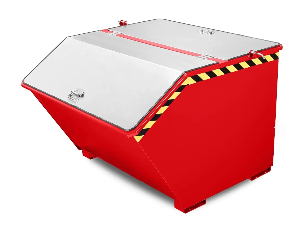 Der Universalkippbehälter RUK lässt sich mit diversem Zubehör ausstatten. Fahrgestelle, Deckel, Sieblocheinsätze mit Ablasshahn, Kranösen, hydraulische Kippbremsen und Lochblechdoppelböden stehen im Zubehör zur Auswahl.