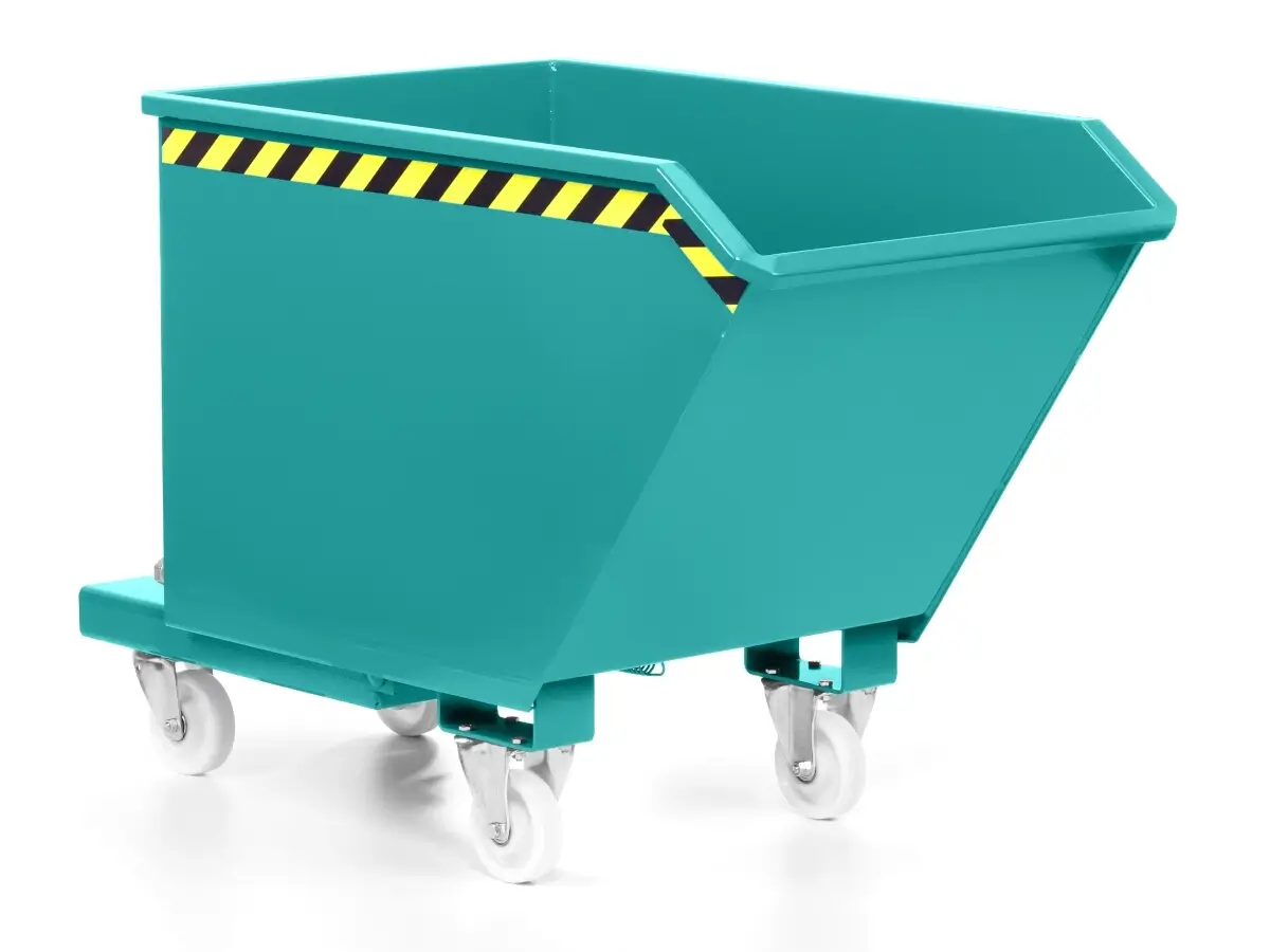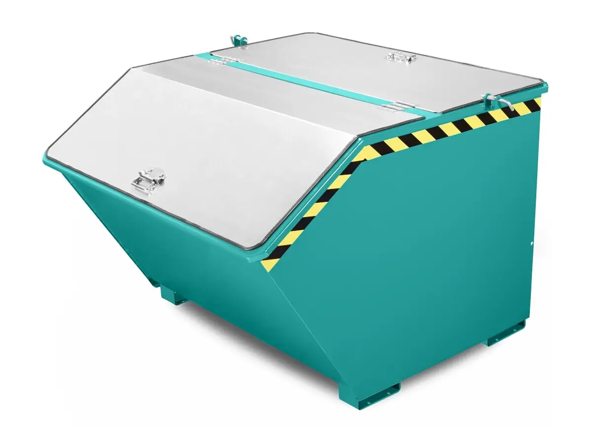 Der Universalkippbehälter RUK lässt sich mit diversem Zubehör ausstatten. Fahrgestelle, Deckel, Sieblocheinsätze mit Ablasshahn, Kranösen, hydraulische Kippbremsen und Lochblechdoppelböden stehen im Zubehör zur Auswahl.