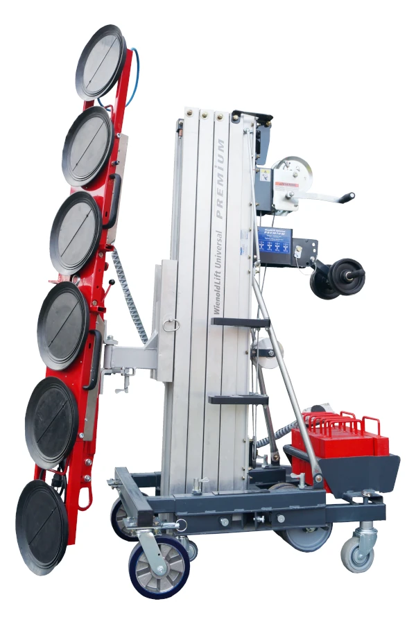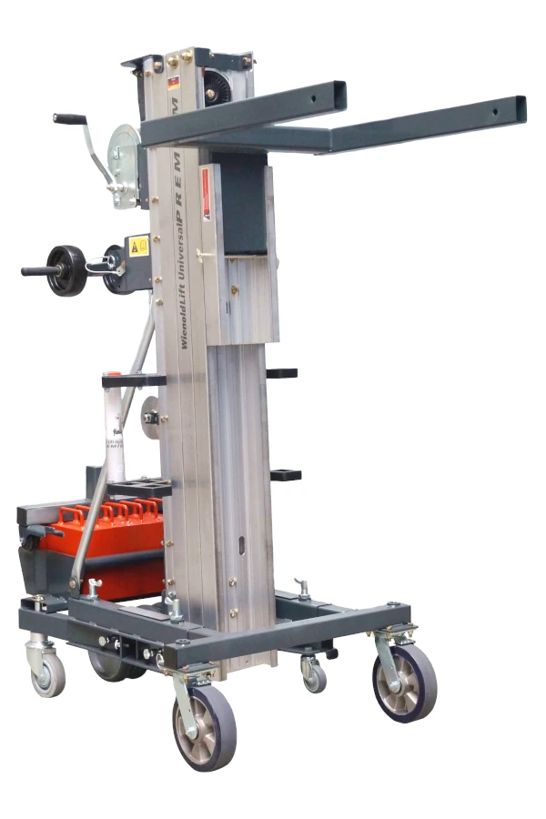 Der Wienold Lift Universal (WLU) ist ein leistungsstarker Materiallift für präzise Hebe- und Montagearbeiten bis 400 kg und 5.15 m Hubhöhe. Durch seine einfache Ein-Personen-Bedienung, den werkzeuglosen Aufbau und die robuste Aluminiumkonstruktion ist er ideal für den täglichen Einsatz in Industrie, Handwerk und Montage. Mit seinem umfangreichen Zubehörprogramm bietet er maximale Flexibilität und Sicherheit.