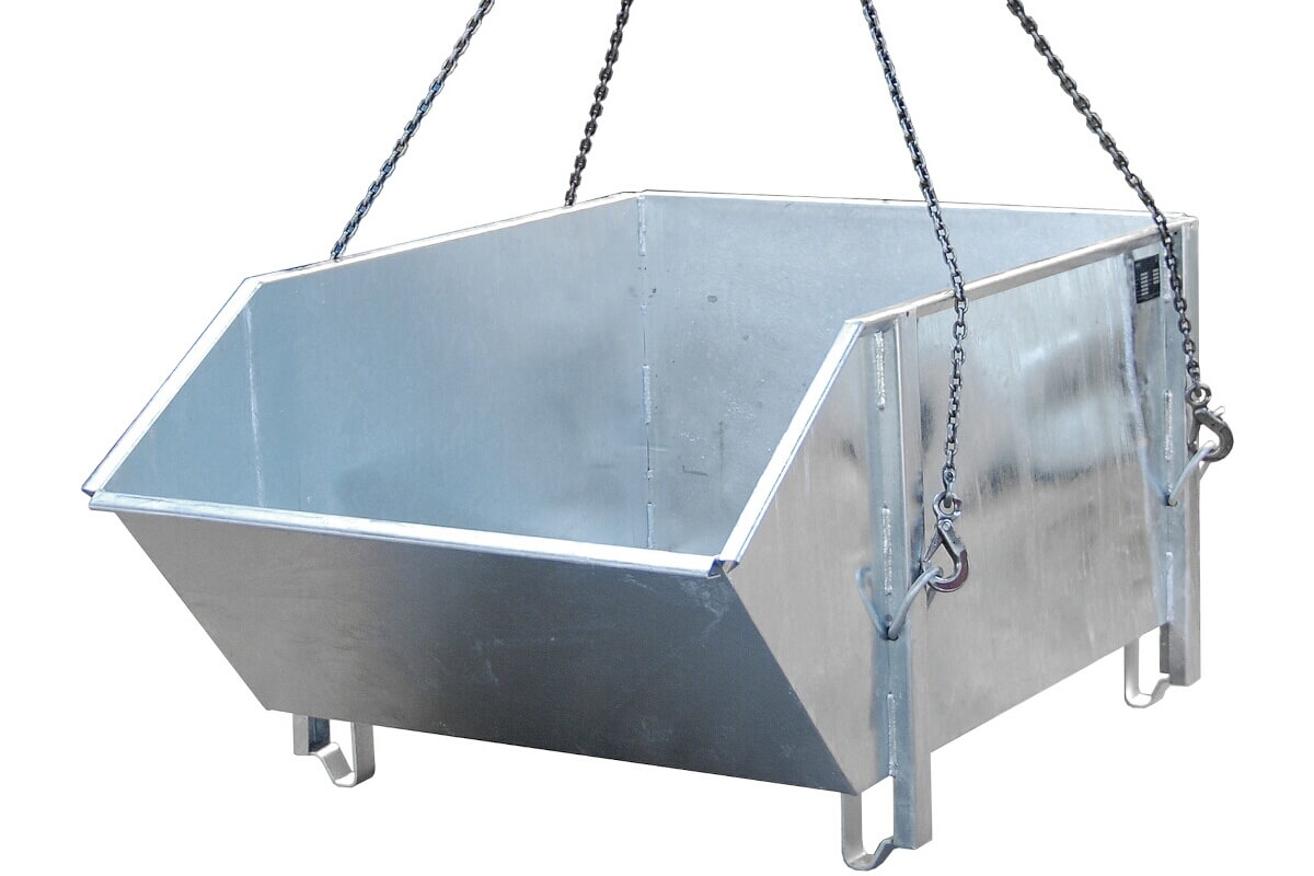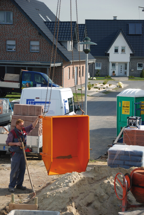 Der Baustoff-Behälter BBG eignet sich ideal zum Sammeln und Befördern von Stück- und Schüttgütern. Seine robuste Konstruktion macht für den Einsatz auf Baustellen empfehlenswert. Seitliche Kranösen ermöglichen das Anschlagen von Lastaufnahmemitteln und den Transport per Kran. Mit seiner Bodenfreiheit lässt er sich auch von einem Hubwagen oder Gabelstapler aufnehmen. Seine vordere Schüttkante ist abgeschrägt und ermöglicht ein vollständiges Entleeren. Zum platzsparenden Verstauen lässt sich der Baustoff-Behälter BBG 3-fach stapeln und mit einer Auflast von bis zu 4500 kg beschweren.