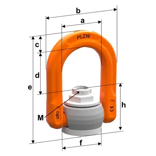 Der pewag Anschlagpunkt PLZW-DW DW15 ist ein anschraubbarer Anschlagpunkt zur Montage auf einem Ankerstab mit Rollgewinde (Dywidag) und dient dem sicheren Lastanschlag an Beton- und Stahlkonstruktionen. Der Anschlagpunkt ist 360° drehbar, der Lastring ist 180° klappbar und muss vor dem Heben in die erwartete Zugrichtung ausgerichtet werden.