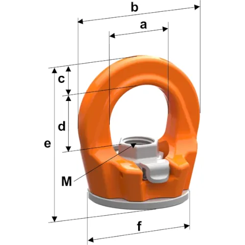 Der pewag Anschlagpunkt PLGW-SN ist eine anschraubbare Ringmutter (pewag winner profilift gamma) zum sicheren Heben und Halten von Lasten mit frei beweglichem Anschlagmittel im Ring. Der Ring ist 360° um die Schraube drehbar und muss vor der Belastung in die erwartete Zugrichtung ausgerichtet werden; ein Drehen unter Last ist verboten.