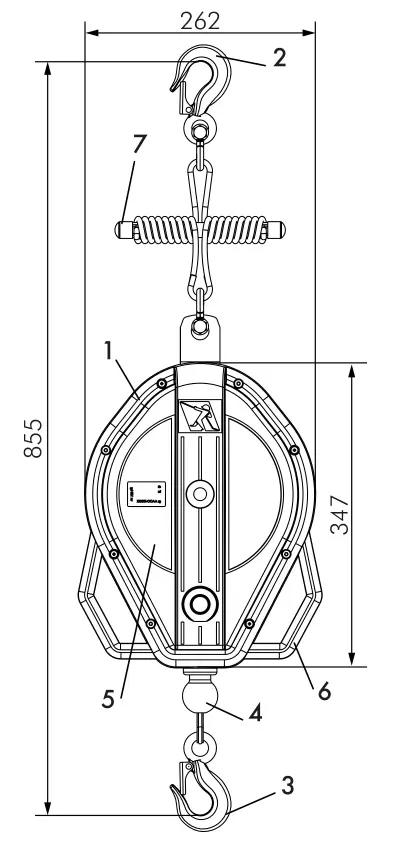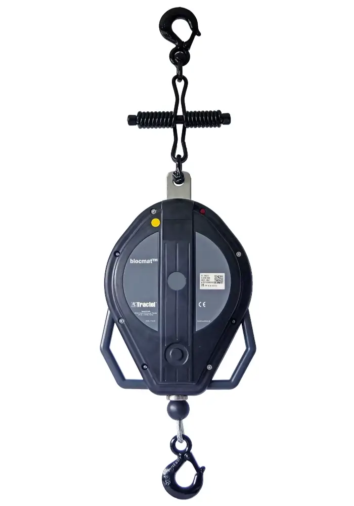 Das Lastsicherungsgerät mit automatischer Aufwicklung blocmat™ TSD von TRACTEL® ist ein Sicherheitsgerät zum Schutz der Last beim Bruch der Lastaufhängung. Der blocmat™ TSD ist nur zur Sicherung von Lasten zugelassen, nicht zum Schutz von Personen gegen Absturz.
