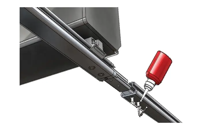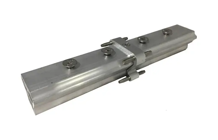 Die Verbindungsschiene wird durch Einschieben in ein Schienenstück und Fixierung mit zwei M8-Senkkopfschrauben montiert. Um ein Lockern der Schrauben zu verhindern, sind die Schrauben mit Loctite 243 oder einem ähnlichen Produkt zu sichern.