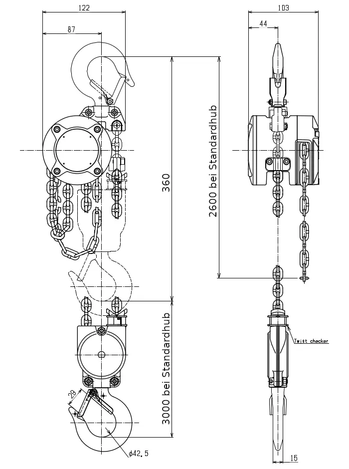 • Vernickelte Lastkette mit geringer Teilung ermöglicht millimetergenaue Hubbewegung