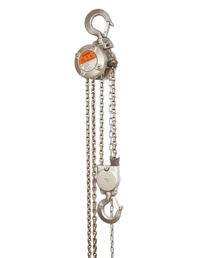 Mit 7,3 kg Eigengewicht, einer minimalen Bauhöhe von 360 mm und 1000 kg Traglast gehört der KITO CX010 Mini Kettenzug unübertroffen zu den kleinsten und leichtesten 1000 kg Flaschenzügen.