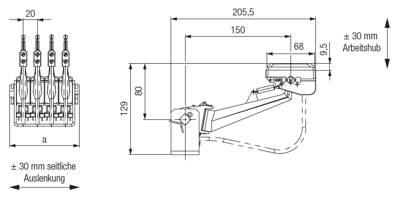 • Max. Ausschwenkung (horizontal/vertikal): ± 30 mm