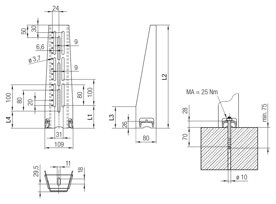 • Für übliche Betonqualität: min. C20/25 bis max. C50/60