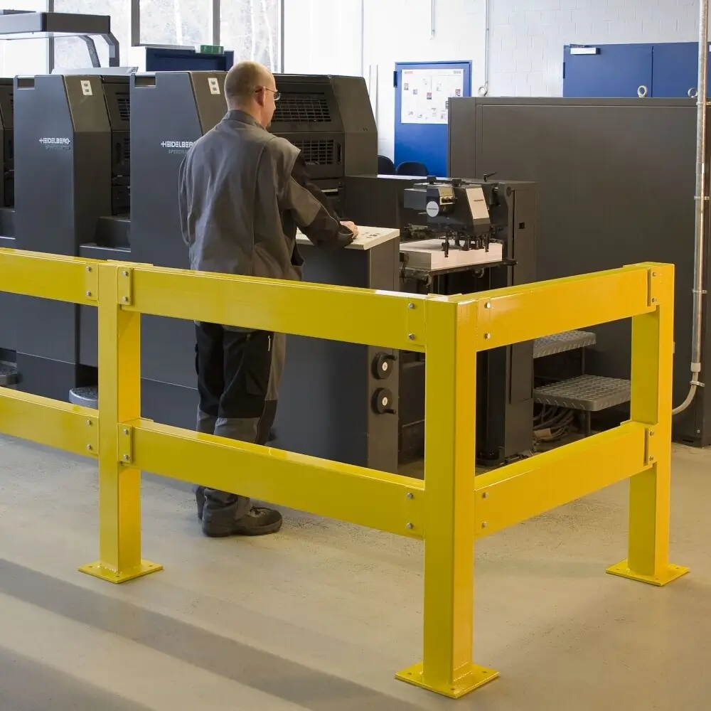 Endpfosten Sicherheitsgeländer 1000 mm, TÜV-zertifiziert, verzinkt und gelb pulverbeschichtet (ähnl. RAL 1023)