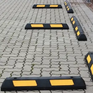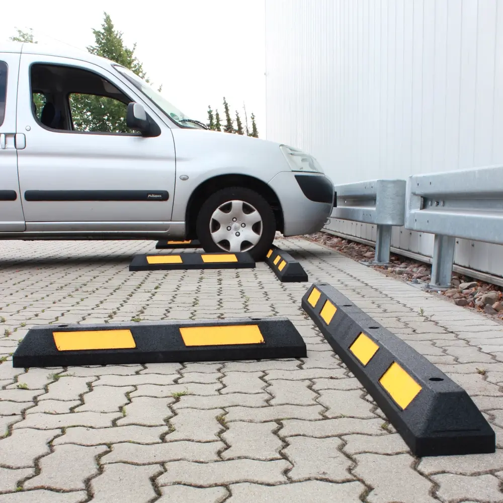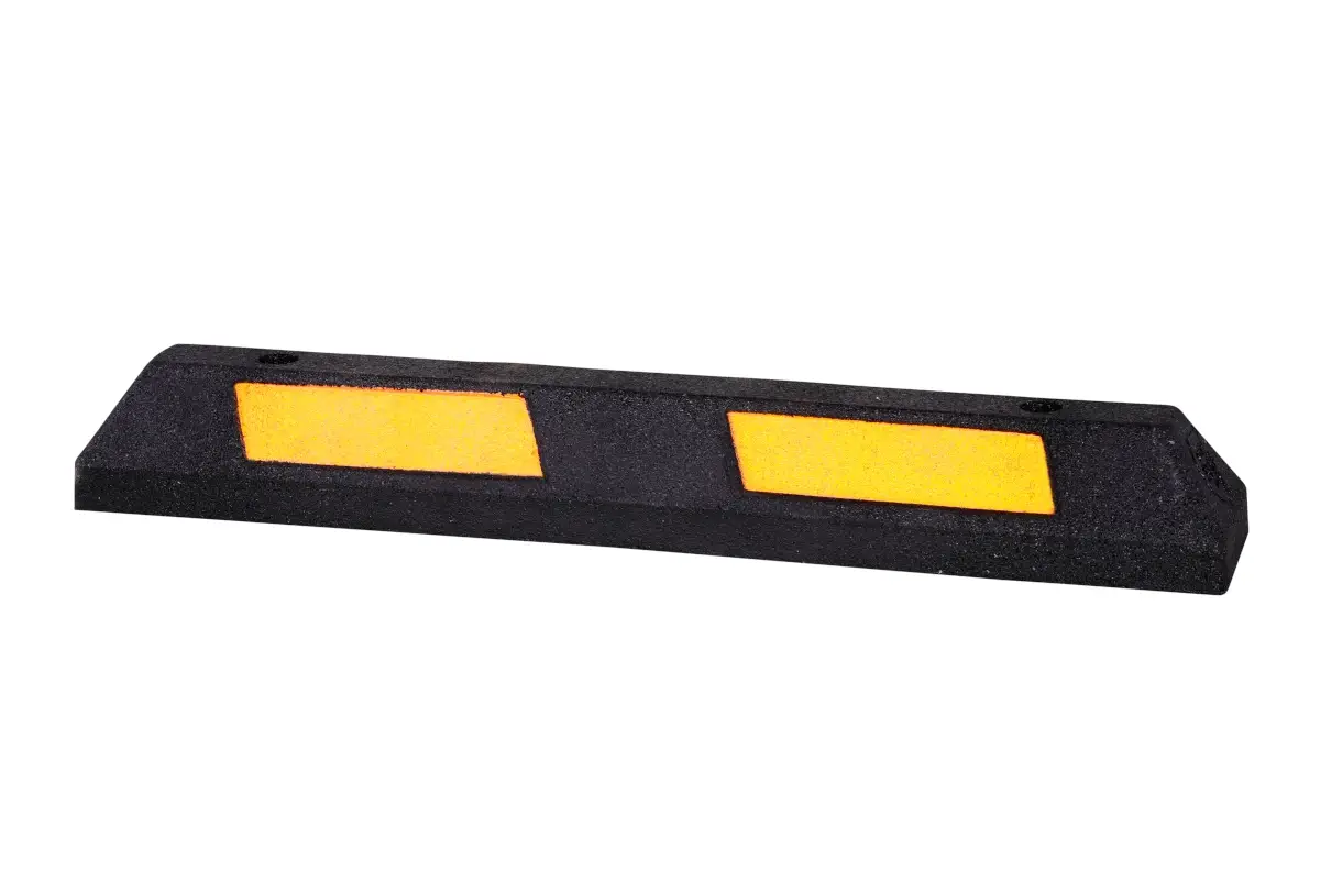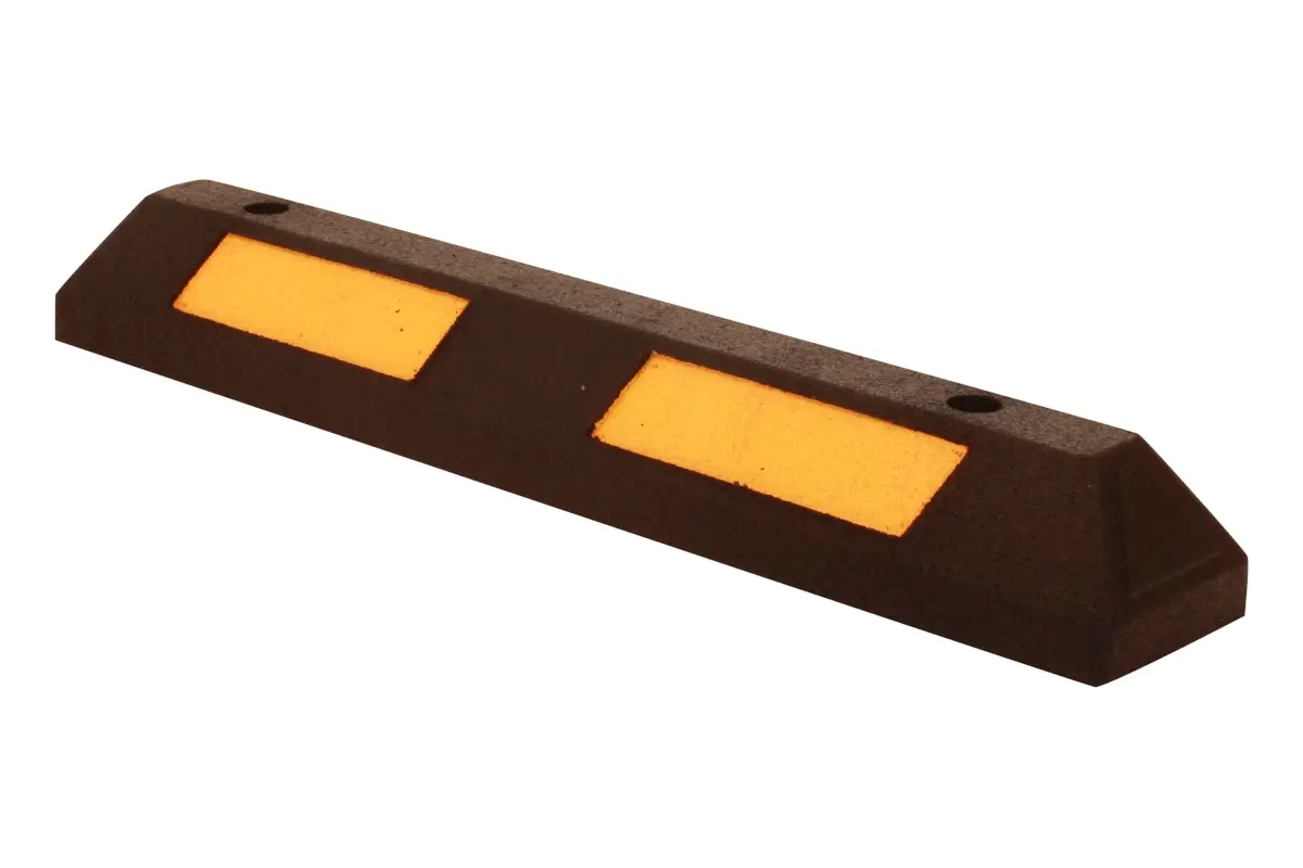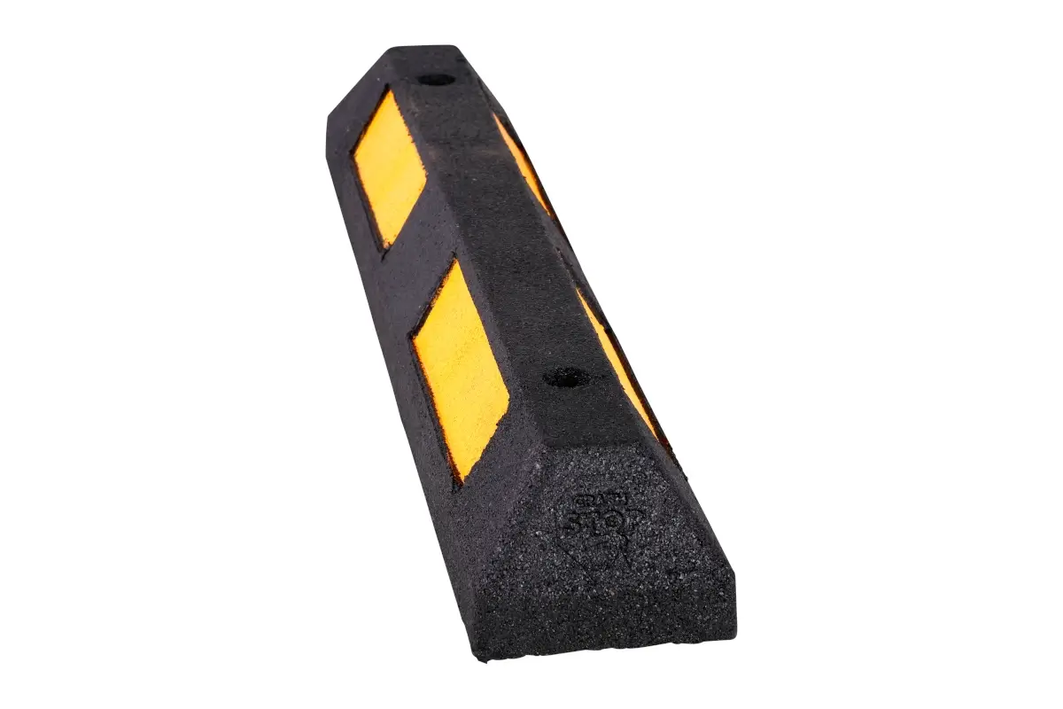 Parkplatzabgrenzung, schwarz mit gelb reflektierender Folie, aus Gummi, Länge 870 mm, Breite 152 mm, Höhe 102 mm, für Außen- und Inneneinsatz, mit zwei Bohrlöchern