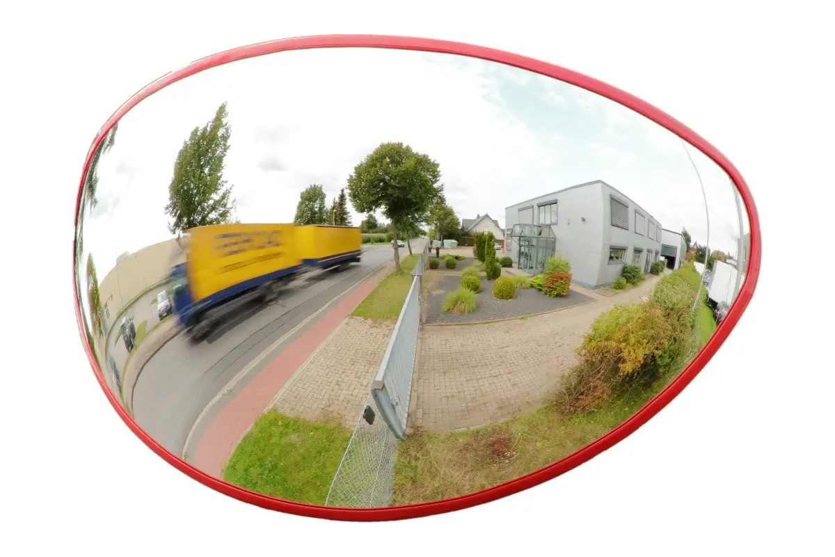 Weitwinkel - Spiegel 80 cm, Acryl, mit Universalhalterung für Pfosten oder Wandbefestigung, für Außen- und Innenbereich.