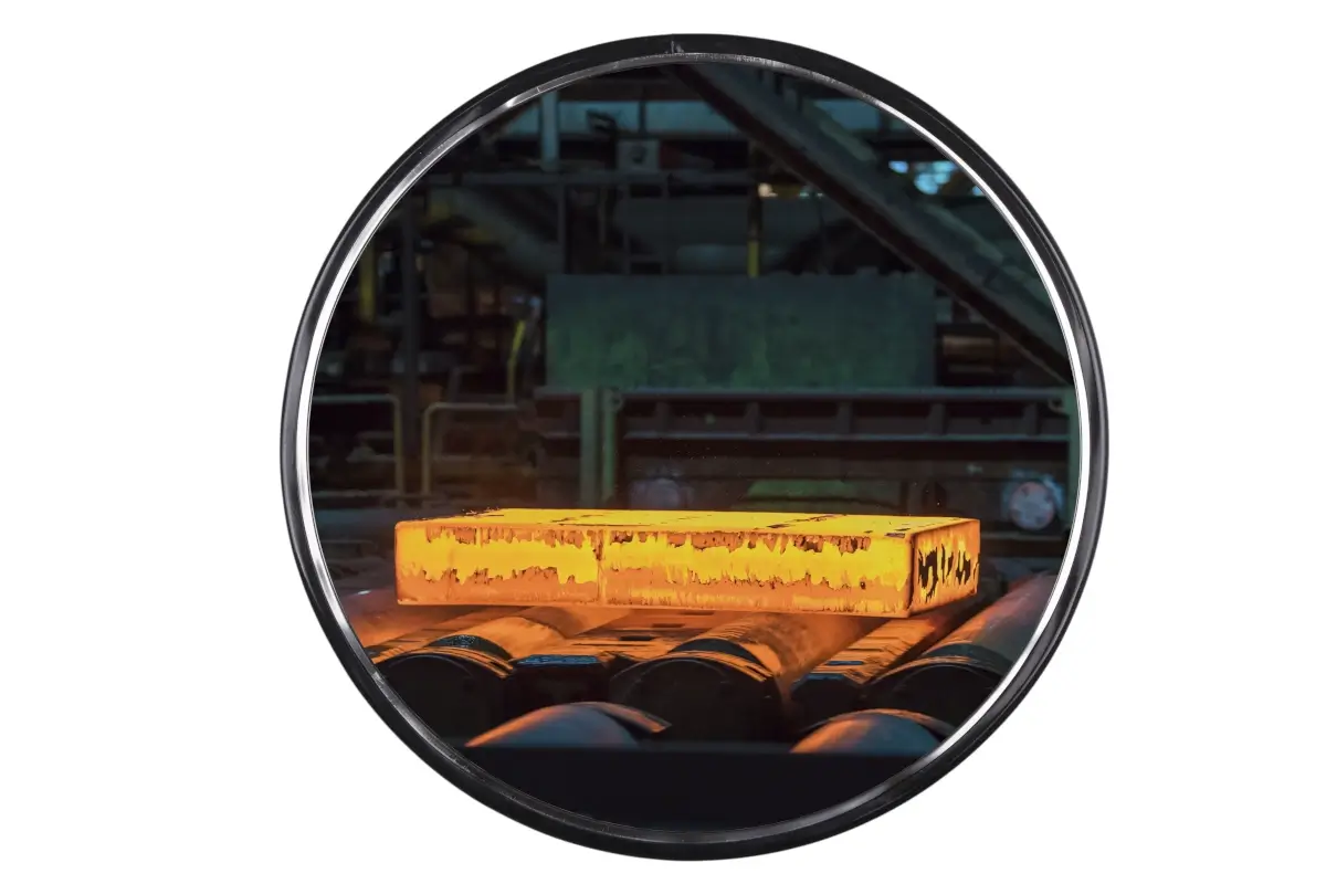 Inox mirror rund 80 cm für Heissbereiche und Lebensmittelbetriebe,TÜV geprüfte Ausführung inkl. Teleskop-Wandhalterung (30-50 cm Verstellbereich), für den Innenbereich, Hitzebeständig bis zu 350°