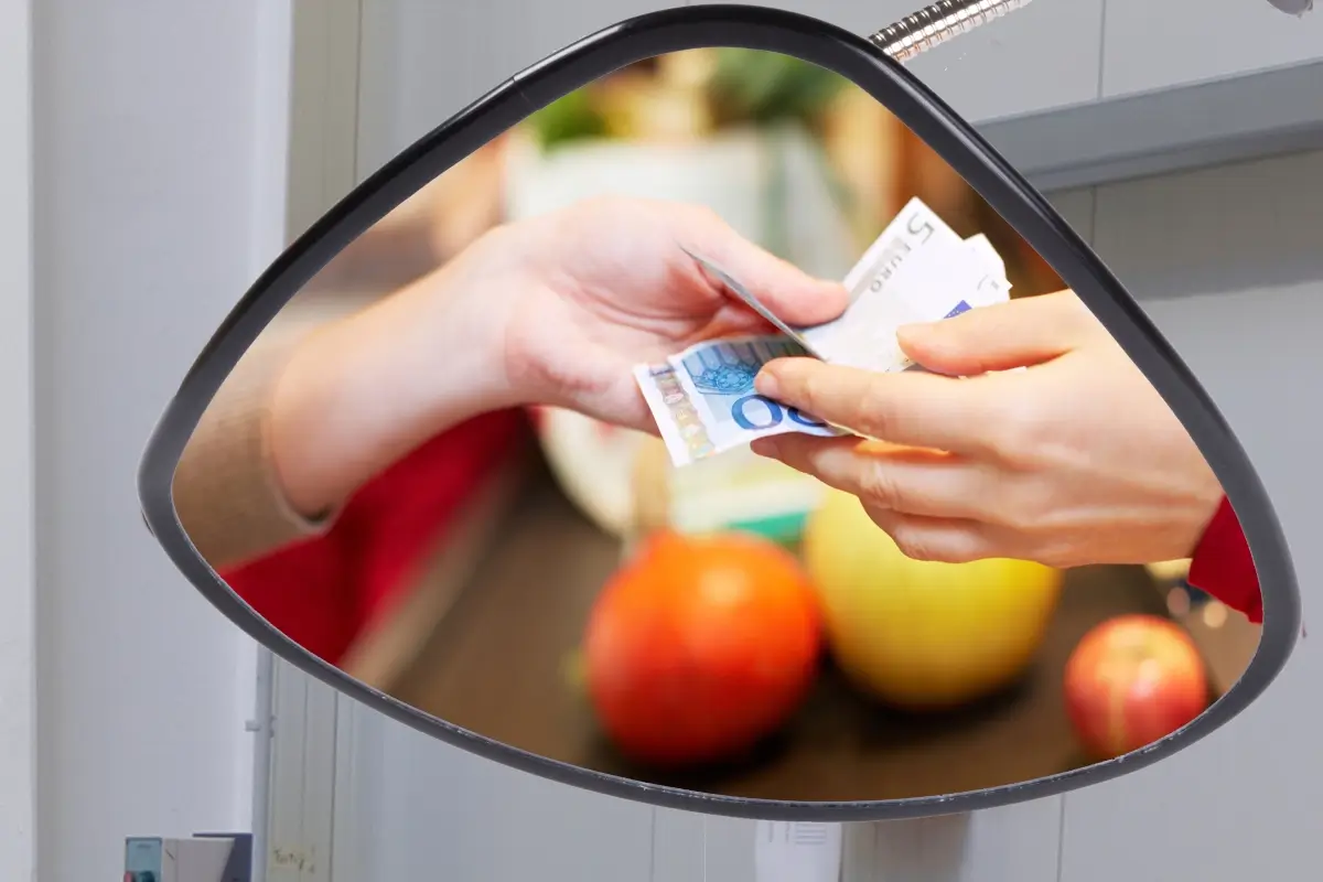 Kassenspiegel T-5, Acryl, 38 x 34 x 34 cm, Einsatz im Innenbereich