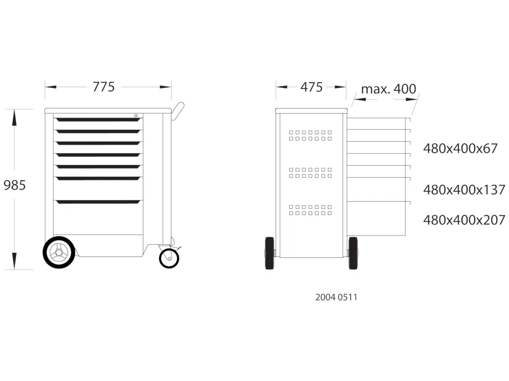 • Schubladen: 5x H 67 mm, 2x H 137 mm, 1x H 207 mm