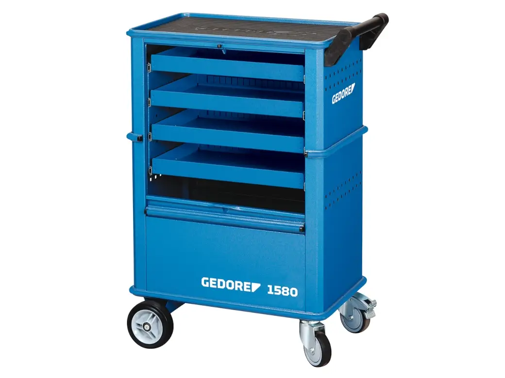 Insgesamt ist der Gedore Werkzeugwagen 1580 ein hochwertiger und funktionaler Werkzeugwagen, der eine sichere und effiziente Aufbewahrung von Werkzeugen und anderen Materialien ermöglicht.