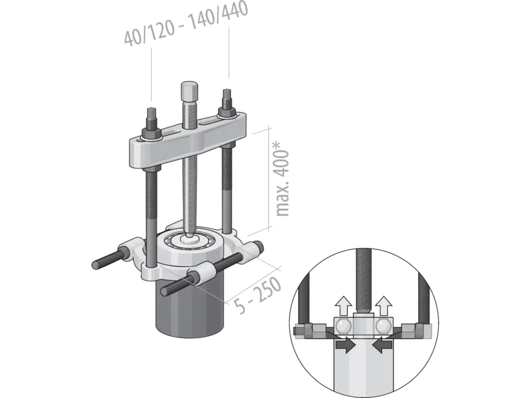 Spannweite max. Außenabzieher70-215 mm