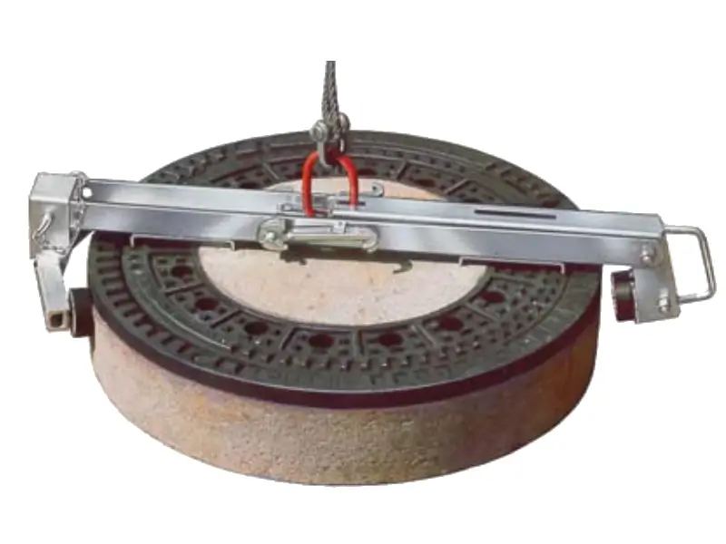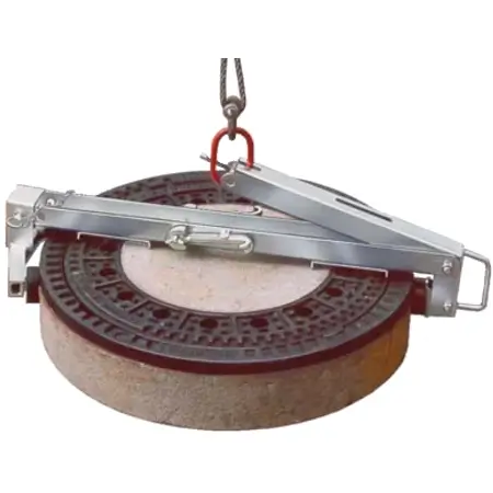 Der Rahmen-Greifer ermöglicht einfaches, sicheres Transportieren und Verlegen von Schachtabdeckungen nach EN 124 / DIN 1229. Sowohl die Rahmen als auch die Deckel können mit dem Rahmen-Greifer sicher gehoben und verlegt werden.