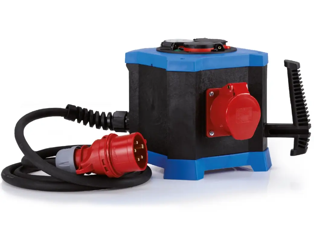 • Ausgänge: 3-fach Schutzkontakt-Steckdose 250 V, 2x CEE-Steckdosen 5x16 A / 400 V