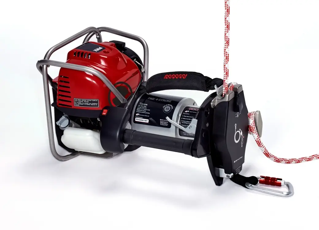 Die ActSafe PMX, angetrieben von Benzin, ist eine Seilwinde, konzipiert um den Transport von Personen und Lasten in schwer erreichbaren Gebieten zu ermöglichen, wo gelegentlich oder regelmäßig Arbeiten durchgeführt werden. Besonders hervorzuheben sind die Leistungsstärke, Robustheit und die kompakte, tragbare Größe der ActSafe PMX. Mit einem Leichtgewicht von nur 13 kg und einer möglichen Seillänge von 700 Metern, ist die ActSafe PMX ein zuverlässiger Partner für Arbeiten in verschmutzten Umgebungen. Die Seilwinde mit Benzinantrieb verfügt über ein geschlossenes Seilsystem und einen Gashebel, der mit der linken Hand bedient werden kann, was die Handhabung sehr benutzerfreundlich macht. Sie wird in einer Transportbox mit Rollen geliefert.