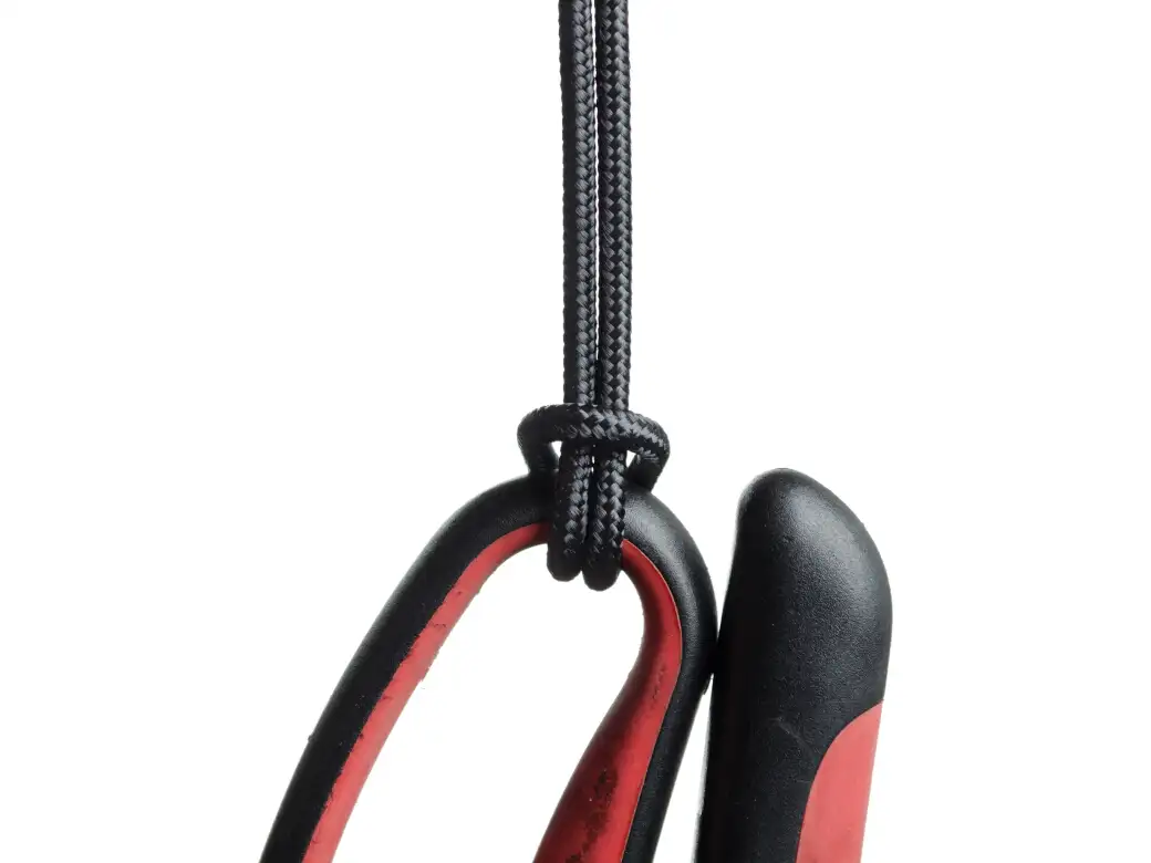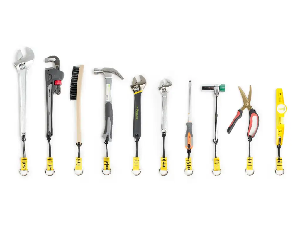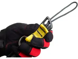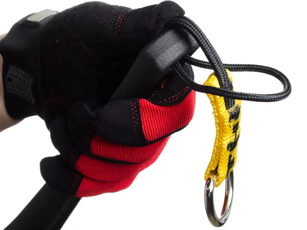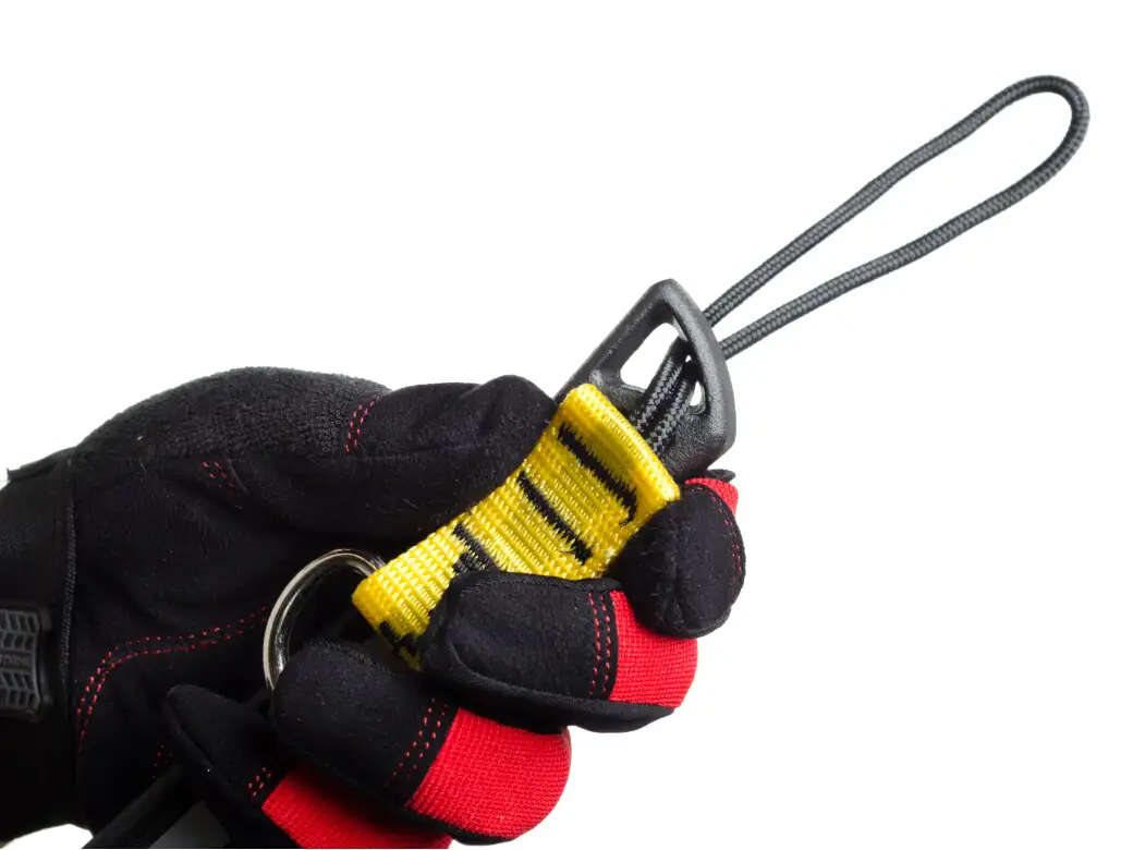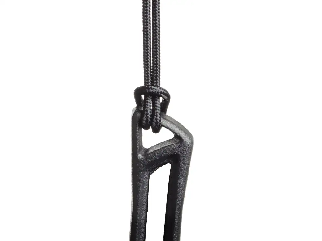Einfache Anbringung an den meisten Werkzeugen – das Schlaufenende einfach durch ein vorgebohrtes Loch oder einen geschlossenen Griff ziehen, durchstecken und spannen, um einen Befestigungspunkt zu schaffen