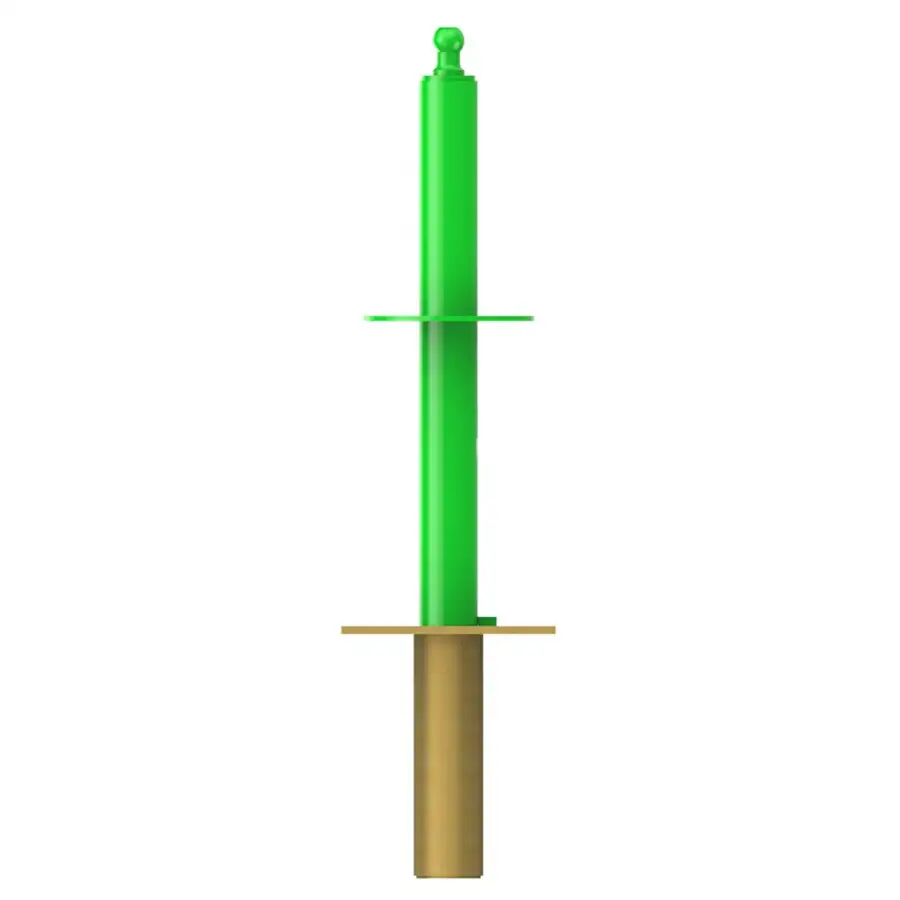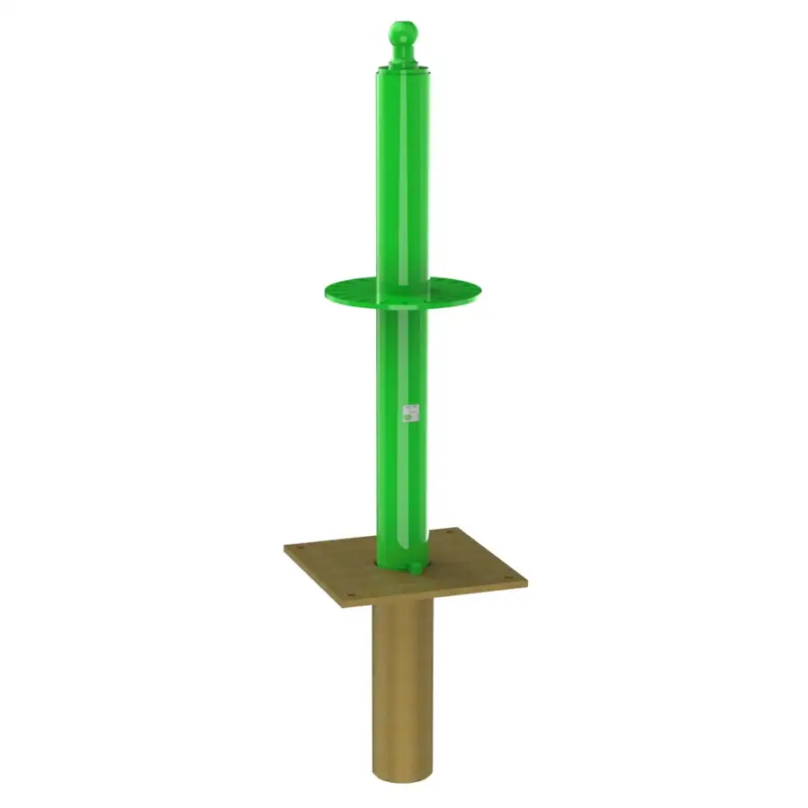 Die Montagefläche muss eben sein und eine Neigung von nicht mehr als plus oder minus 1° aufweisen. Ein Loch von Ø 72 mm wird 578 mm tief in den vorhandenen Beton gebohrt. Das Bohrloch wird mit Epoxidharz gefüllt und der Montagepfosten nach Aushärtung bis zum Drehblock abgesenkt.