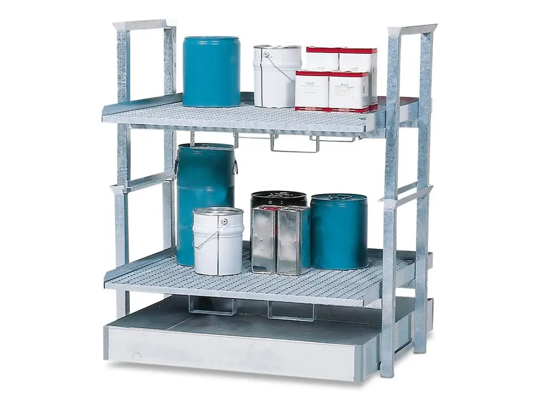 • kombinierbar mit Auffangwanne RW-2, zugelassen zur Lagerung wassergefährdender Stoffe und entzündbarer Flüssigkeiten (H 224-226), optional lieferbar