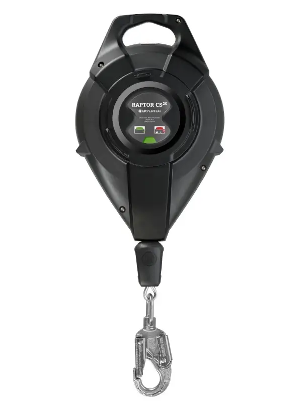 Das Höhensicherungsgerät RAPTOR CS mit selbsteinziehbarem Edelstahlseil und automatischer Blockierungsfunktion ermöglicht sicheres Arbeiten in der Höhe und Tiefe.