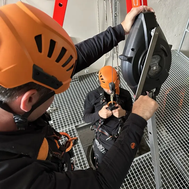 Das Gerät ist nach EN 360:2002, EN 1496:2017/A zertifiziert und sichert eine Person mit einem maximalen Nutzergewicht von 140 kg.