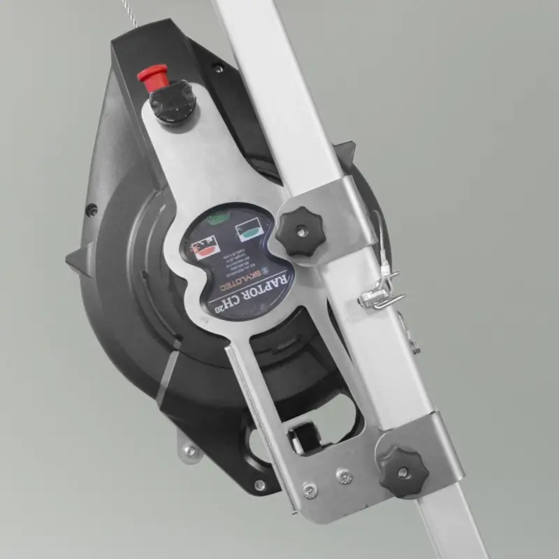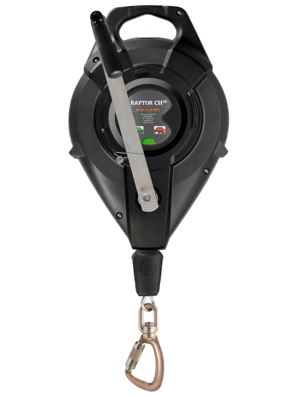 Das Höhensicherungsgerät RAPTOR HUB mit einem 20 m Stahlseil und automatischer Blockierungsfunktion ermöglicht sicheres Arbeiten in der Höhe und Tiefe. RAPTOR HUB ist im Gegensatz zum RAPTOR zusätzlich mit einer Rettungshubeinrichtung ausgestattet, welche sich im Notfall aktivieren lässt und eine schnelle Rettung ermöglicht. Nach Überprüfung durch eine sachkundige Person ist das Gerät nach der Nutzung der Rettungshubeinrichtung wieder einsatzfähig, was seine Wirtschaftlichkeit steigert.