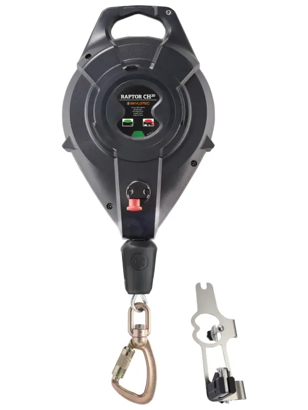 Das Höhensicherungsgerät RAPTOR HUB mit einem 20 m Stahlseil und automatischer Blockierungsfunktion ermöglicht sicheres Arbeiten in der Höhe und Tiefe. RAPTOR HUB ist im Gegensatz zum RAPTOR zusätzlich mit einer Rettungshubeinrichtung ausgestattet, welche sich im Notfall aktivieren lässt und eine schnelle Rettung ermöglicht. Nach Überprüfung durch eine sachkundige Person ist das Gerät nach der Nutzung der Rettungshubeinrichtung wieder einsatzfähig, was seine Wirtschaftlichkeit steigert.