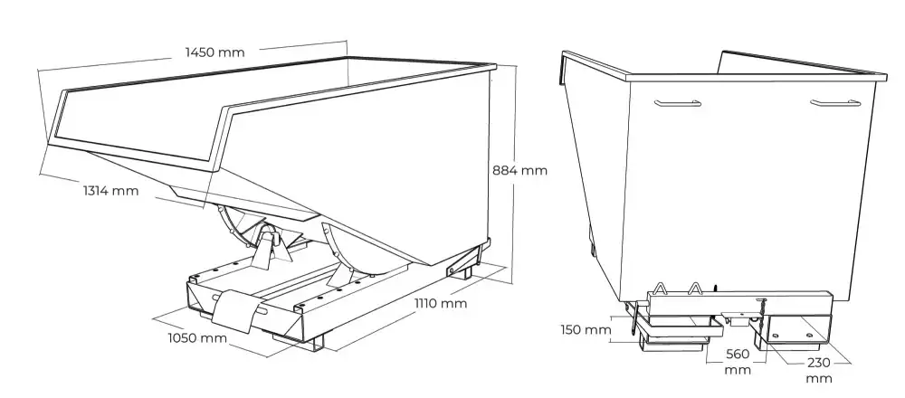 Die von uns hergestellten Selbstentladebehälter ermöglichen eine schnelle und sichere Entleerung der Ware. Zu ihren Vorteilen gehört eine langlebige, langlebige und solide Konstruktion, die eine hohe Widerstandsfähigkeit gegen mechanische Beschädigungen aufweist. Der selbstentleerende Container ist gabelstapler- oder radtauglich und somit unglaublich vielseitig einsetzbar. Einer der vielen Vorteile der Investition in Container ist die Möglichkeit, die Größe entsprechend den individuellen Bedürfnissen des Kunden auszuwählen. Sie sind in vielen Dimensionsvarianten erhältlich.