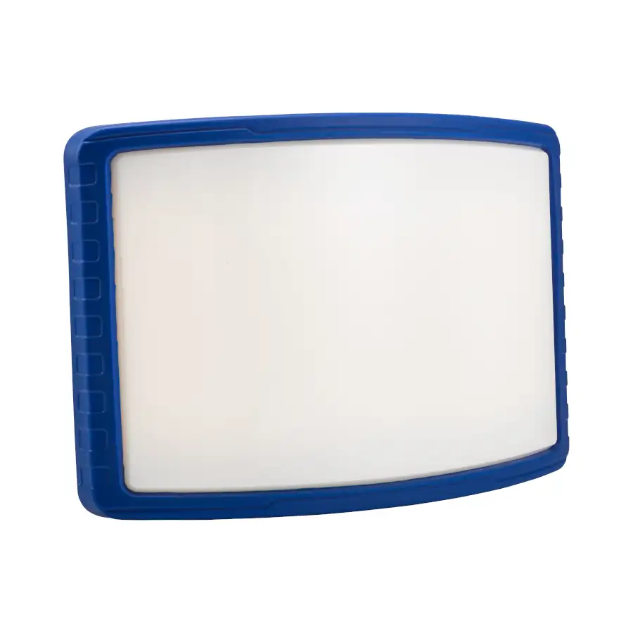 Mit einem integrierten Tragegriff und einem blauen Haken zur Aufhängung lässt sich die Leuchte leicht transportieren und sicher positionieren. Sie kann auch auf einem Stativ montiert werden. Die robuste, gummierte Umrandung schützt vor Stößen, besonders nützlich auf Baustellen oder unter rauen Bedingungen.