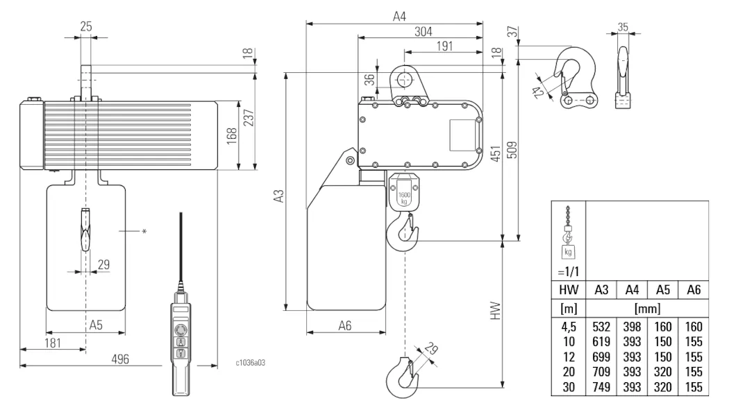 Die Varianten sind standardmäßig mit 3 m Hub und Kettenspeicher ausgerüstet. Auf Nachfrage können auch längere Hübe realisiert werden. Zudem verfügen die Elektrokettenzüge serienmäßig über eine integrierte Schützensteuerung, die eine schnelle Reparatur durch Verwendung von Serienkomponenten ermöglicht.