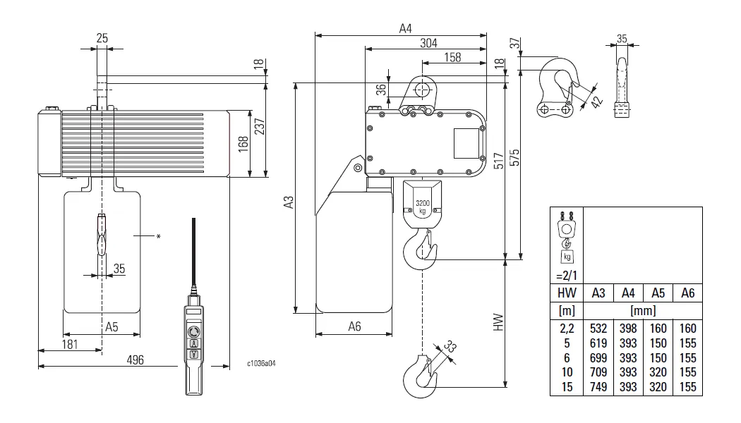 Die Varianten sind standardmäßig mit 3 m Hub und Kettenspeicher ausgerüstet. Auf Nachfrage können auch längere Hübe realisiert werden. Zudem verfügen die Elektrokettenzüge serienmäßig über eine integrierte Schützensteuerung, die eine schnelle Reparatur durch Verwendung von Serienkomponenten ermöglicht.