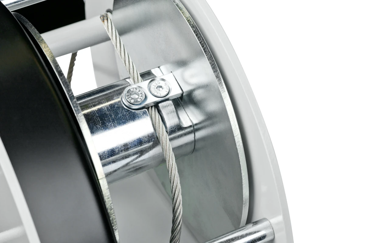 Dank der praktischen Freilauf-Funktion kann die Trommel ausgekoppelt werden, sodass sich das Seil besonders schnell und komfortabel herausziehen lässt.